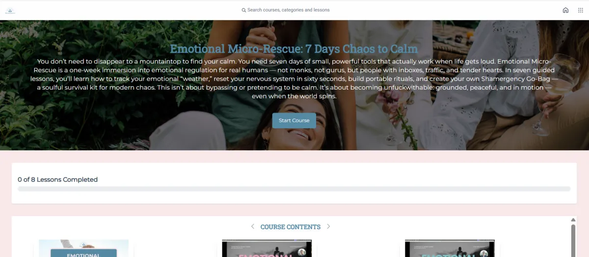 Our 7-Day Emotional Micro-Rescue gives you more than temporary relief—it's a complete system for emotional sovereignty. With proven techniques including breathwork, movement medicine, anchor objects, and your personal "Shamergency Go-Bag," you'll build an embodied practice that travels with you everywhere.